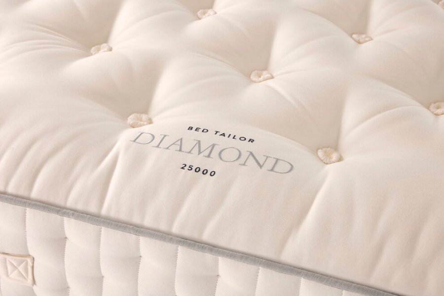 Comfort is elevated further by an exceptionally rich blend of natural fillings, carefully layered to create a breathable, supportive and temperature-regulating sleep environment. The Diamond 25000 includes blended British wool and viscose, plus a British wool and mohair blend for added resilience and natural warmth. For an even more luxurious feel, the mattress also includes a cashmere, Yorkshire wool, silk and British wool blend, introducing a softer, more indulgent surface comfort while maintaining support. These are complemented by a British wool, hemp and flax blend and a cotton, hemp and flax blend. Hemp and flax add absorbency to help draw moisture away from the sleeping surface, while cotton supports a fresher, cooler feel. Wool contributes natural temperature regulation, helping the mattress remain comfortable across changing seasons. The inclusion of traceable British wool also supports customers who value ethically sourced materials.
