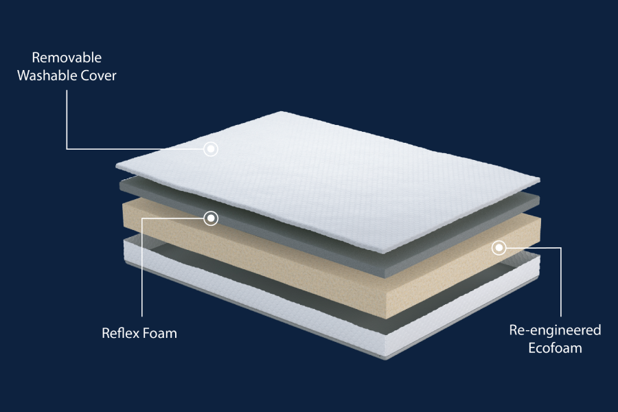 At the top layer, Reflex Foam provides responsive support and firmness. This high-density foam is designed to gently adapt to the body’s shape while offering a supportive pushback, helping to keep the spine better aligned throughout the night. Unlike softer comfort foams, Reflex Foam maintains its structure and resilience, making it particularly well suited to sleepers who require a more orthopaedic feel.