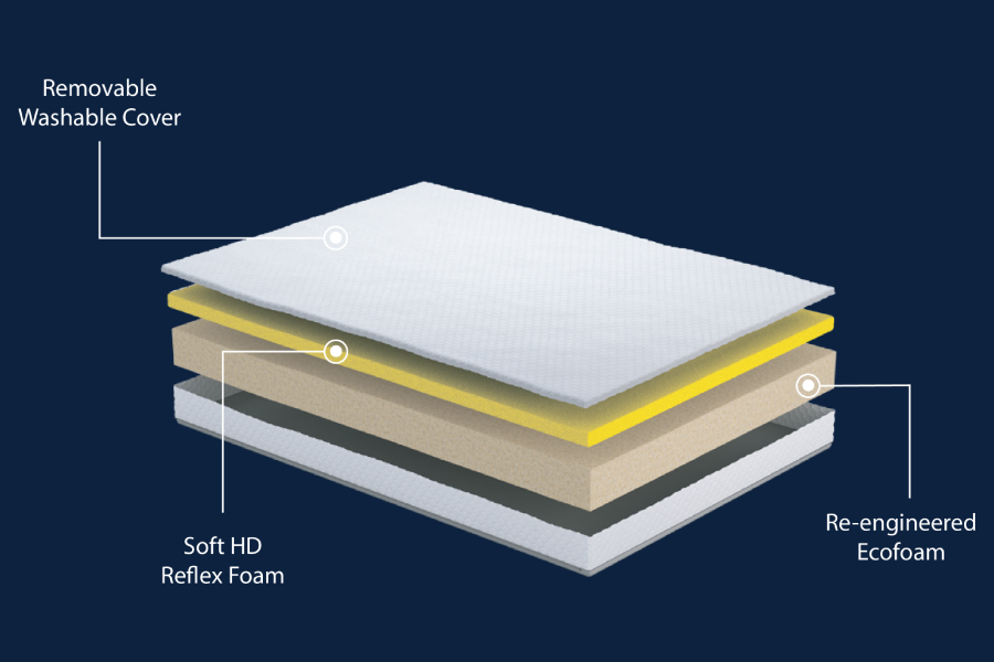 Reflex Foam – This is a high-density responsive foam that provides support and firmness. Reflex foam is made up of tiny holes that slightly adapt to your body shape, but bounce back against you at the same time.